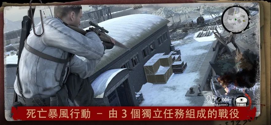 《Sniper Elite》好评如潮的X光击杀镜头可捕捉你最精彩的近战攻击和炸药陷井击杀画面,呈现令人毛骨悚然的细节。