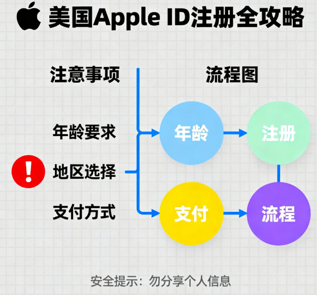 共享账号仅适合临时下载需求,若需长期稳定使用,优先自主注册专属美区Apple ID——这是规避共用风险的最佳方式。以下是2026年最新简化版注册流程,新手也能轻松上手: