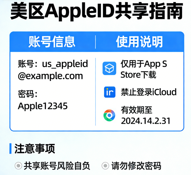- 1. 不共享账号:不要把自己注册的美区/香港ID分享给他人,也不要使用他人共享的账号,避免账号被滥用、锁定,保护个人隐私数据;